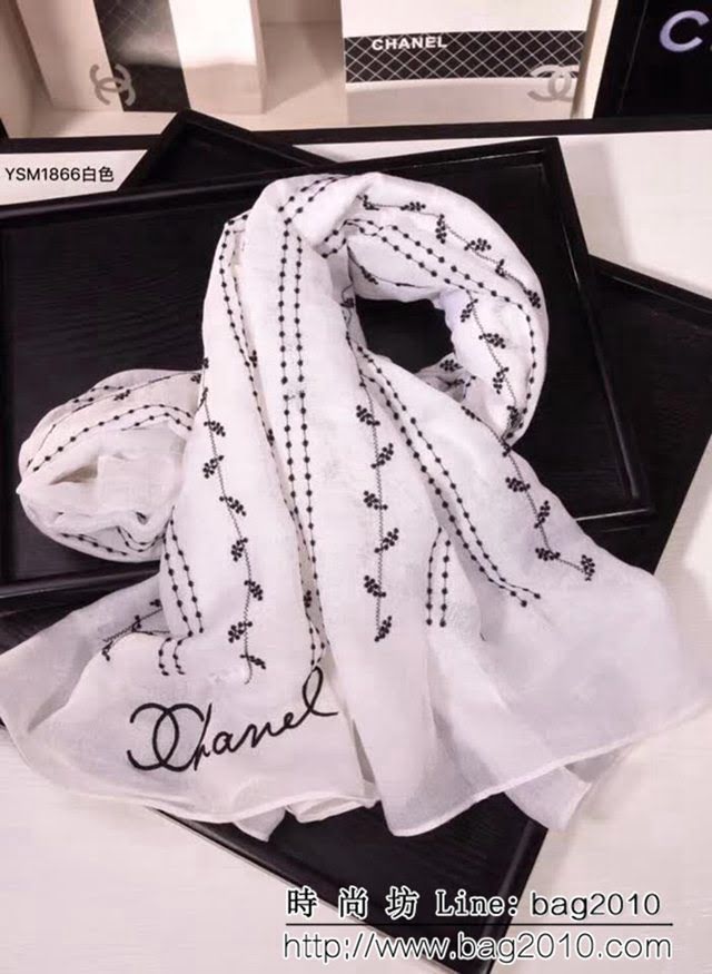 CHANEL香奈兒  2018專櫃原版 真絲羊毛刺繡長巾 YSM1866 LLWJ6391