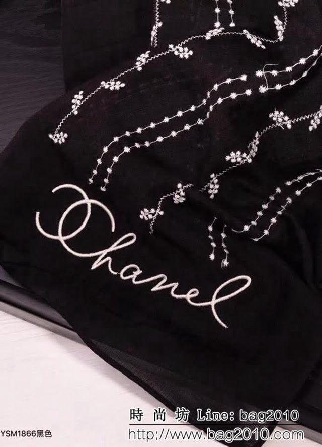 CHANEL香奈兒 2018專櫃原版 真絲羊毛刺繡長巾 YSM1866 LLWJ6392