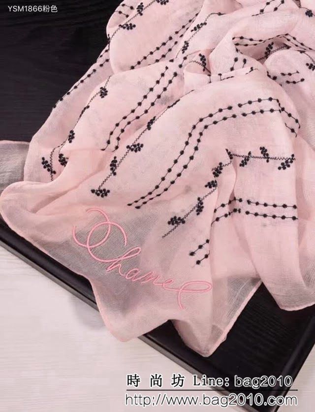 CHANEL香奈兒 2018專櫃原版 真絲羊毛刺繡長巾 YSM1866 LLWJ6393