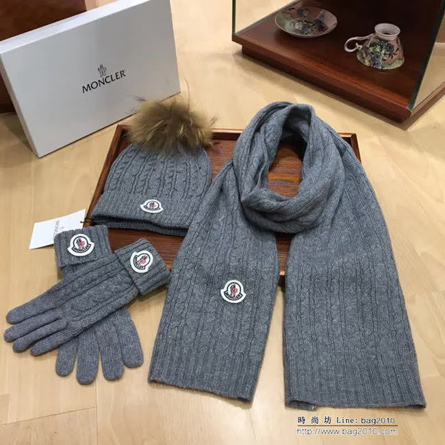 專櫃同步蒙口MONCLER新款圍巾帽子和手套三件套 百分之70羊絨30%兔毛成分 保暖又時尚 配15公分狐狸毛球,休閒百搭 圍巾尺寸190/30,黑,紅,灰,3色可選 男女通用,情侶款