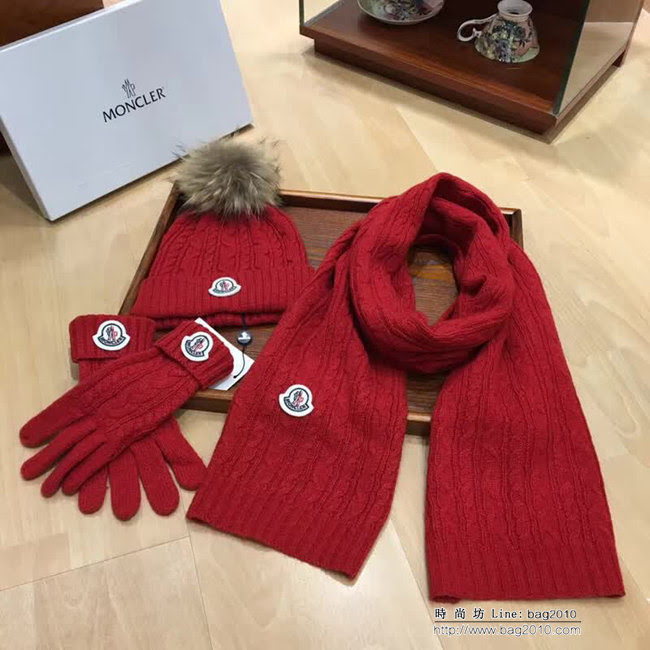 專櫃同步蒙口MONCLER新款圍巾帽子和手套三件套 百分之70羊絨30%兔毛成分 保暖又時尚 配15公分狐狸毛球,休閒百搭 圍巾尺寸190/30,黑,紅,灰,3色可選 男女通用,情侶款