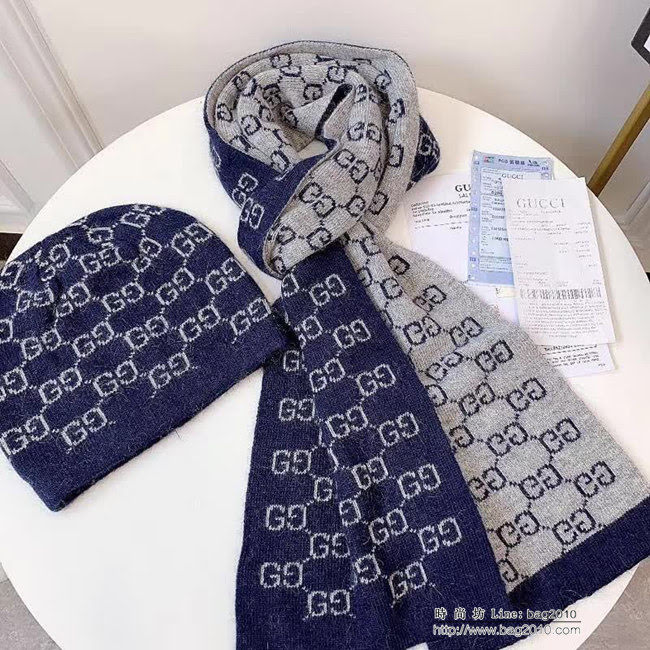 GUCCI古馳 兔絨+羊絨針織圍巾帽子套裝 情侶款 男女同款 LLWJ6474