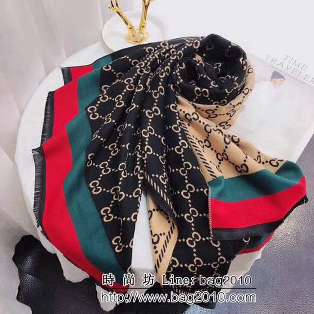 GUCCI古馳 冬季新款綠紅羊毛混紡條紋圍巾 可做披肩 LLWJ6487