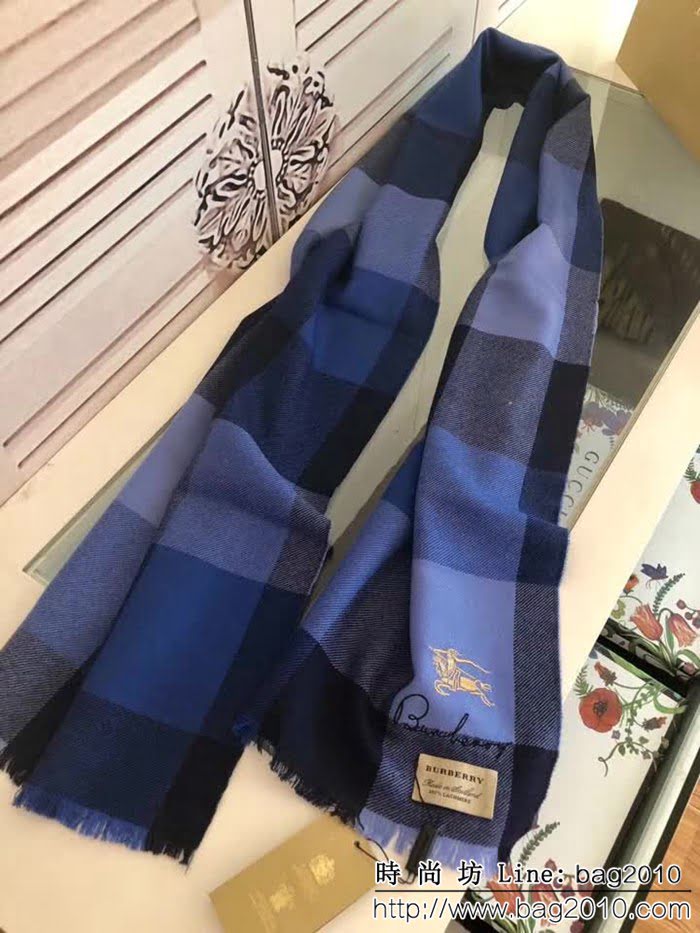 BURBERRY巴寶莉專櫃原版 刺繡LOGO羊絨圍巾 男女同款 LLWJ6671