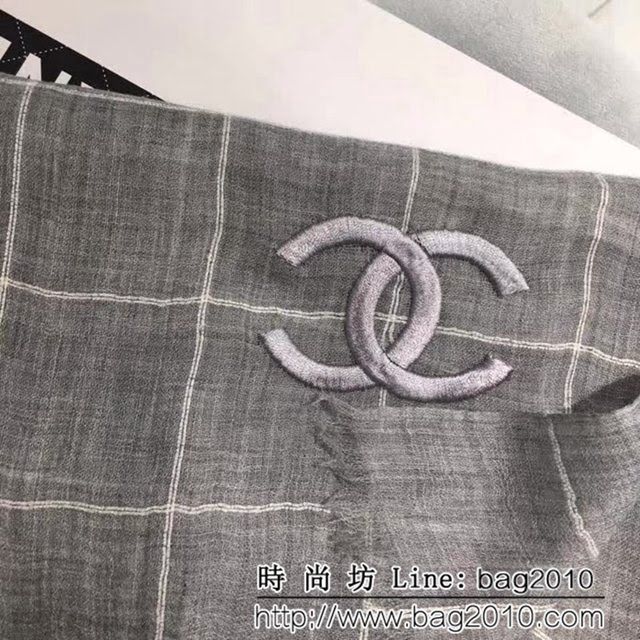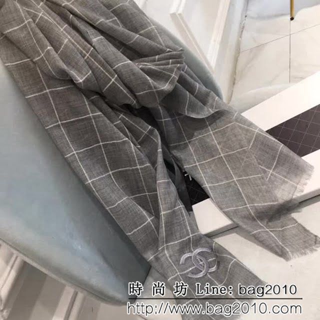 CHANEL香奈兒 2018最新款鑲嵌buling珠片方格羊絨長圍巾 CH028 LLWJ6675