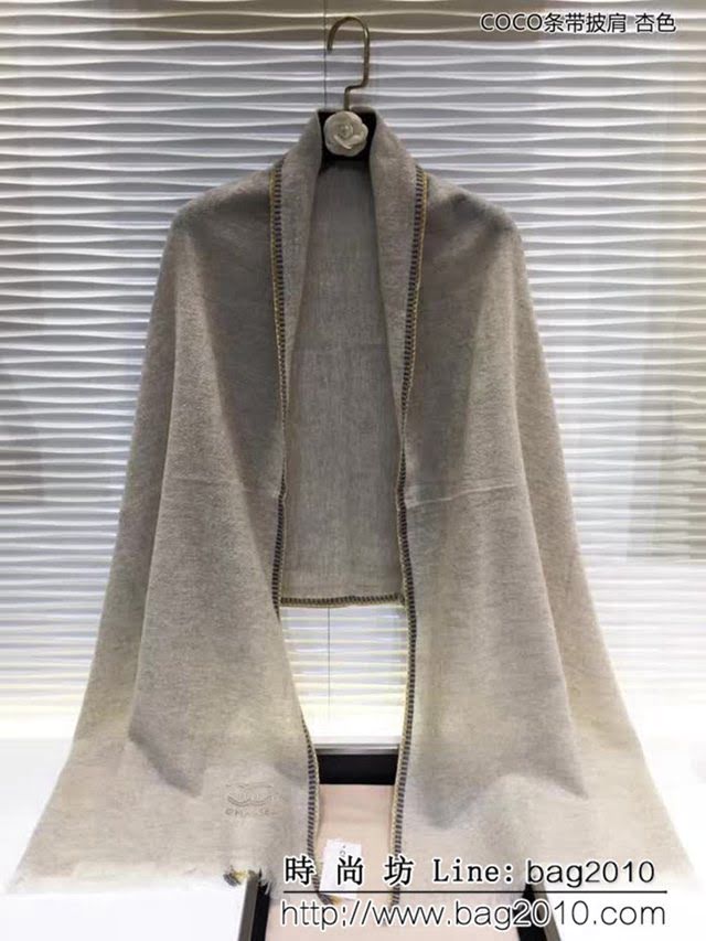 小香新品【COCO條帶披肩】圍巾,精湛的工藝,市面上從未流通過,圍巾非常輕薄,製造紗織鬆軟細膩,常混專櫃的人大概瞭解義大利專櫃的貨都是香奈兒最最精選的貨品,是排隊都未必買的到的東西!在雙C的經典圖案絕對是圍巾的最大亮點。規格65*180,100%羊毛