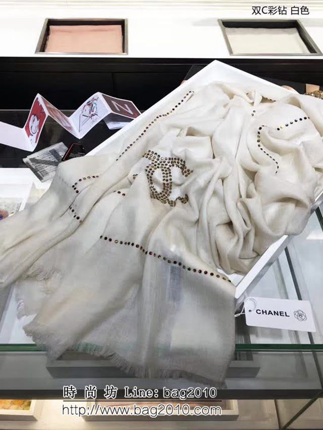 CHANEL香奈兒頂級原單雙C彩鑽 純羊絨燙鑽圍巾 LLWJ7066