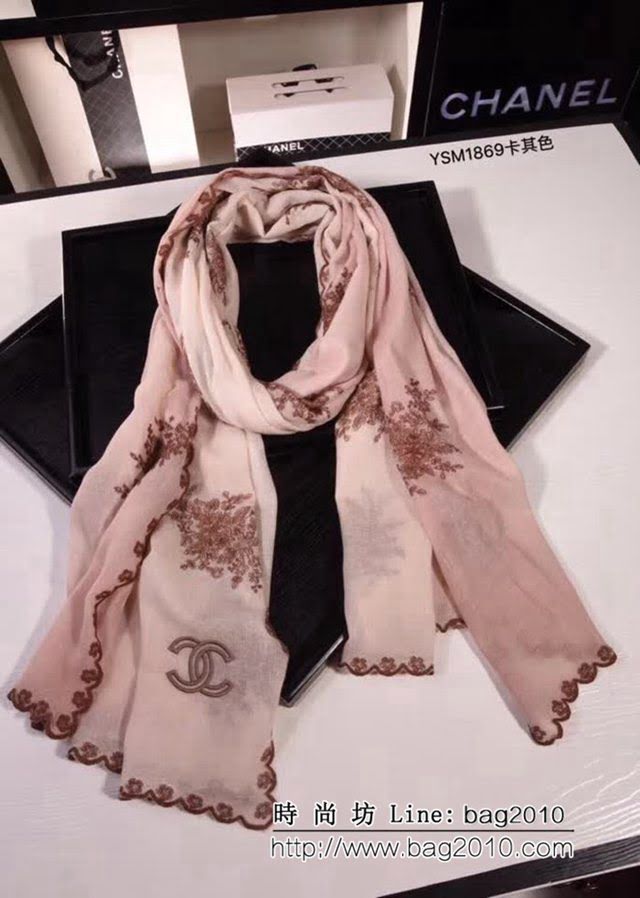 CHANEL香奈兒 2018專櫃原版手工吊染真絲羊毛刺繡長圍巾 YSM1869 LLWJ7409