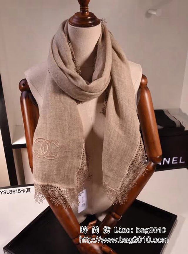 CHANEL香奈兒頂級品 2018秋冬新款山羊絨蕾絲邊圍巾 YSL8615 LLWJ7414