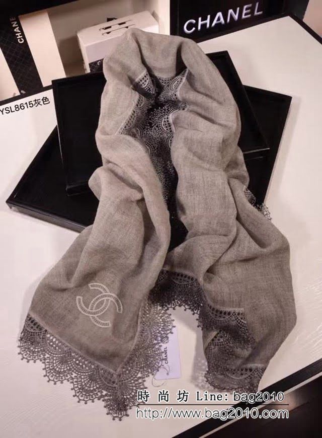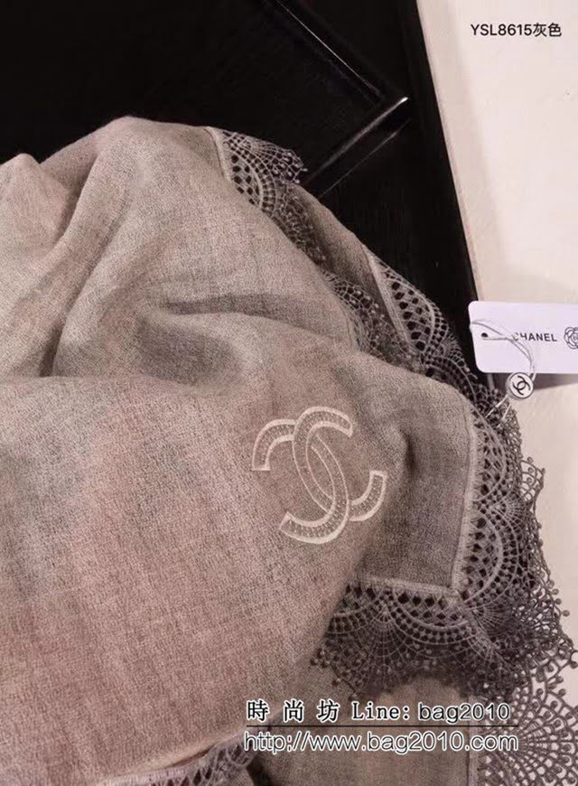 CHANEL香奈兒頂級品 2018秋冬新款山羊絨蕾絲邊圍巾 YSL8615 LLWJ7416