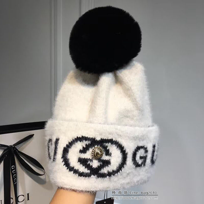 GUCCI古馳 跑量款 超保暖兔絨毛球水貂絨針織帽 LLWJ7913