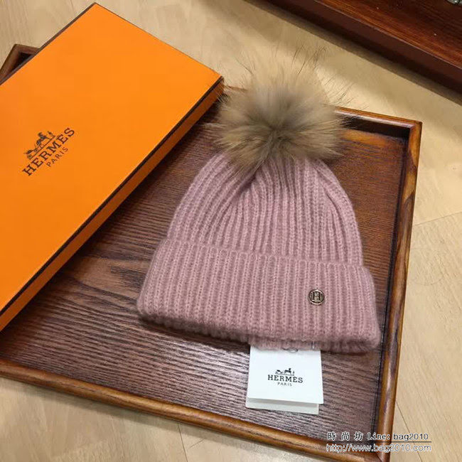 愛馬仕HERMES 秋冬新款 時尚爆款狐狸毛球羊絨帽 LLWJ8716