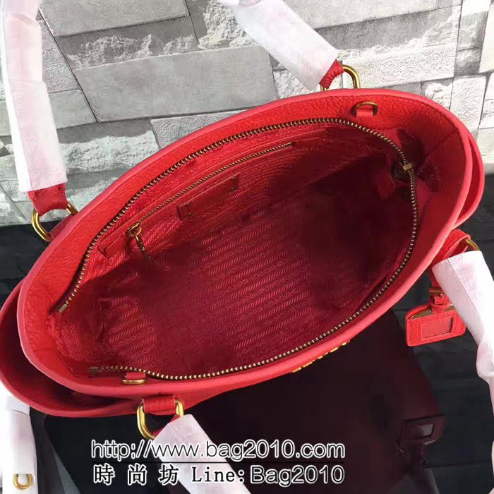 PRADA/最新款/1BD069原版荔枝紋採用進口頭層牛皮 原廠古銅五金/做工精緻、光滑平整的邊油、皮質柔軟,包包上手,效果極好/休閒、實用、大方/實物更佳/肩背兩用效果極佳 克色、寶藍、深灰、灰色、大紅、棗紅、共6色上市/尺寸:W30.5/H28/D15cm(袋口35.5)義大利產地標+175代碼