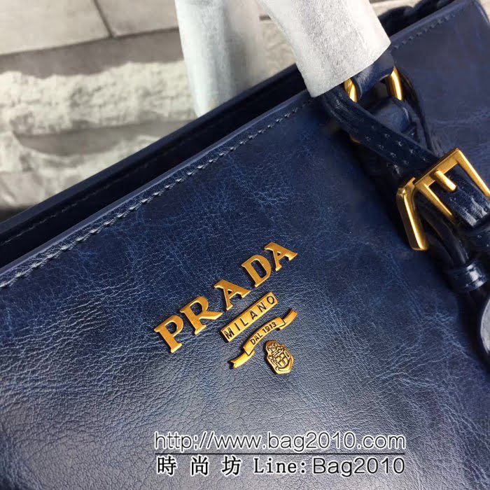 PRADA 2966原版油蠟皮義大利最新版 採用進囗雙色油臘皮 原廠古銅五金一流的手工、光滑平整的邊油、皮質柔軟,包包上手,效果極好,可肩背兩用 克色、寶藍、棗紅、大紅、4色上市/W34/H22/D16.5cm 義大利產地標+175代碼