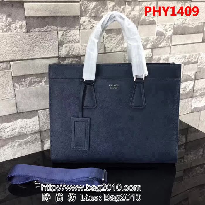 普拉達PRADA原單 最新款2VG014-1F藍色原版荔枝紋男士商務公事包 PHY1409