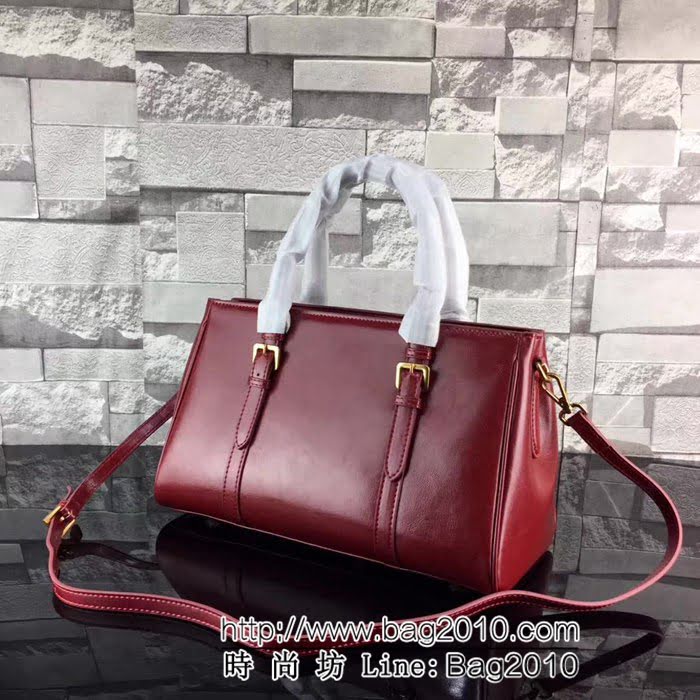 PRADA 2966原版油蠟皮義大利最新版 採用進囗雙色油臘皮 原廠古銅五金一流的手工、光滑平整的邊油、皮質柔軟,包包上手,效果極好,可肩背兩用 克色、寶藍、棗紅、大紅、4色上市/W34/H22/D16.5cm 義大利產地標+175代碼