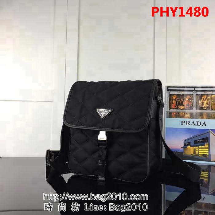 普拉達PRADA原單 0770 黑色原單韓國布配皮 PRADA男士單肩斜挎包 PHY1480