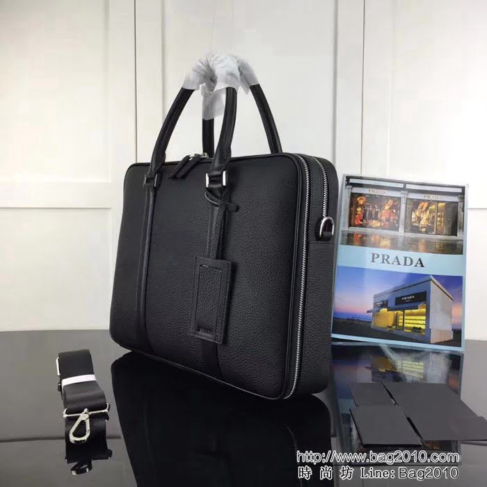 普拉達PRADA原單 全網最新款 P家爆款男士商務手提包 2VE366黑色荔枝紋皮 PHY1616