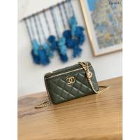 Chanel專櫃新款鏈條女包 香奈兒23K黑銀牛皮手柄woc手提肩背包 djc5536