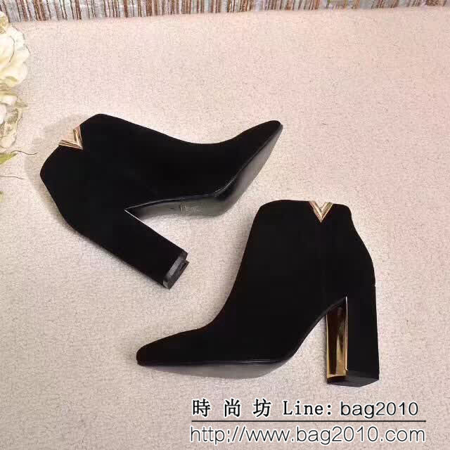 路易威登LV 專櫃同步 LV字五金扣飾 彈力絨 高跟百搭短靴 QZS2470