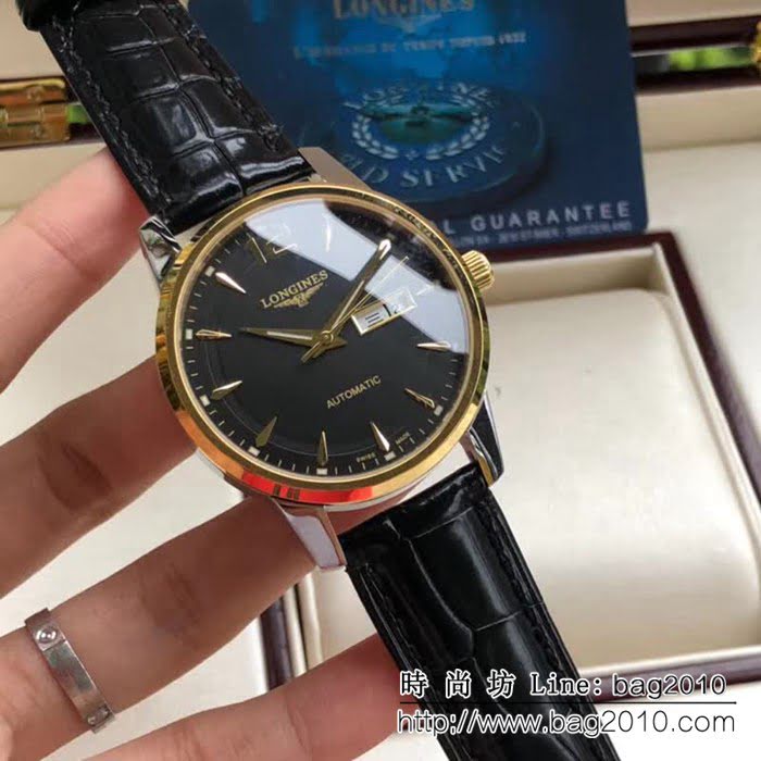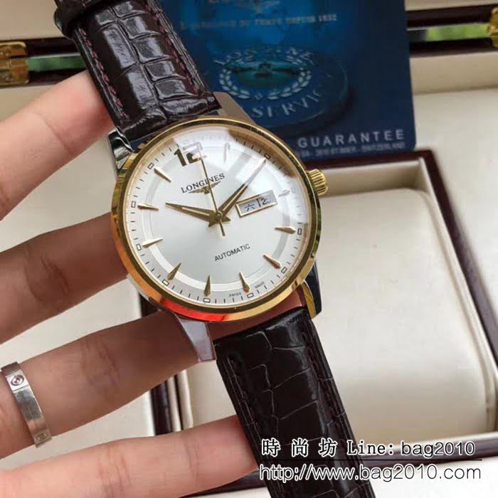 品牌:浪琴新款獨家首發簡約時尚 類型:精品男士腕表 錶帶:真牛皮錶帶 機芯:頂級全自動機械機芯 鏡面:礦物質強化玻璃 品味高雅 浩瀚大氣 匠心獨運 腕間瑰寶 尺寸:直徑41m厚12mm熱賣上市!高清圖片 實物拍攝無色差實物更精緻