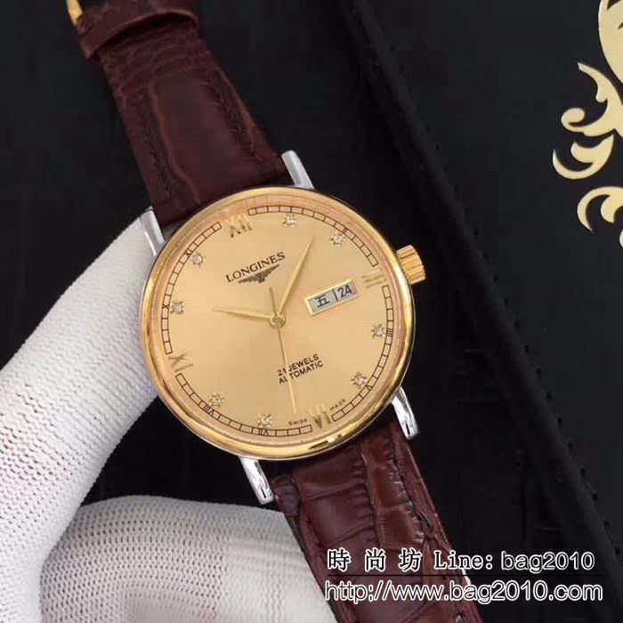 浪琴--LONGINES 男士腕表 優雅男士,簡潔精緻 西鐵城8215機芯 316L精鋼表殼 礦物強化玻璃鏡面 真皮錶帶 尺寸:直徑39mm 厚度12mm