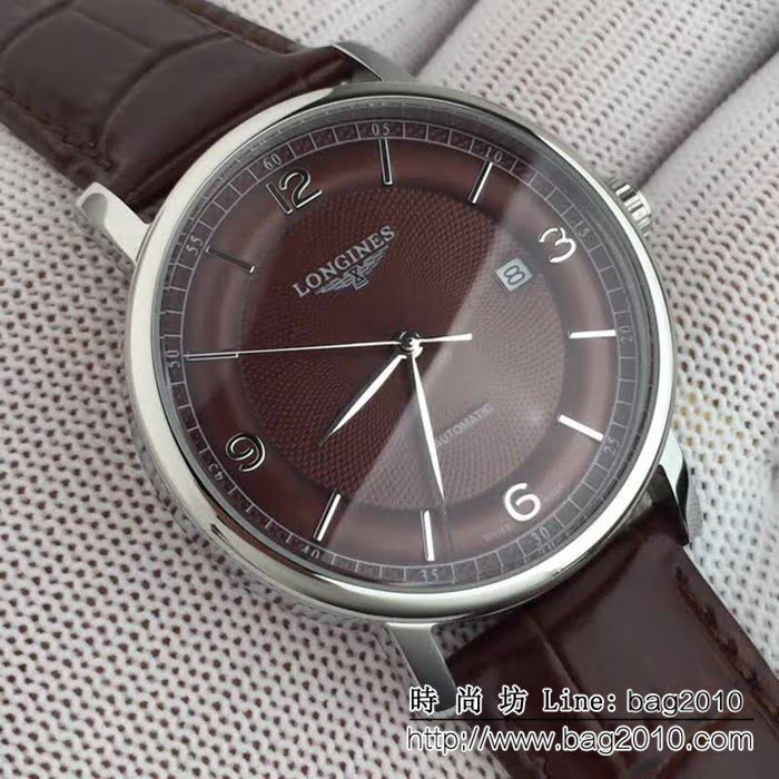 浪琴 男士時尚腕表 全自動機械(西鐵城8215機芯) 精鋼打造表殼 牛皮錶帶 礦物質玻璃鏡面 尺寸40/12mm. (專注原裝新機) 專注品質,不忘初衷! 真實展現,JH出品!