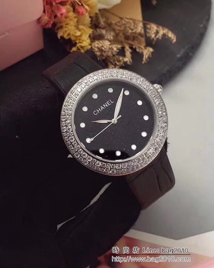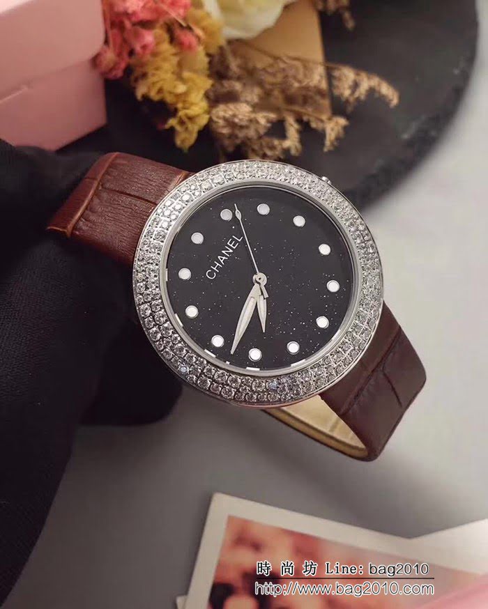 香奈兒(CHANEL)是一個有著整整百年歷史的著名品牌,它善於突破。香奈兒手錶有著高雅、簡潔、精美的風格。316精鋼外殼除了鑲嵌堅硬光亮的捷古硞石,錶盤彩用天然藍耀石打造星空面,原裝進口石英機芯,藍寶石水晶玻璃,超強夜光刻度和夜光針,搭配多色皮帶。手錶直徑36mm,厚7mm 柳丁實拍,初心不改!!!