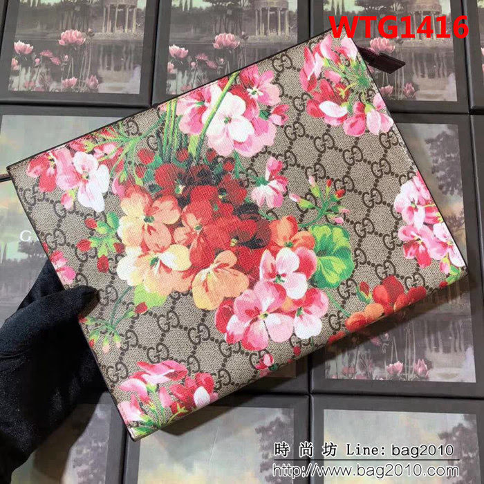 GUCCI古馳 爆款 天竺葵花 GG織帶 大氣手拿包 430268 紅花PVC WTG1416