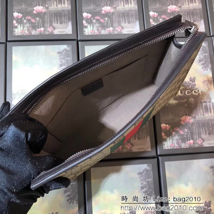 GUCCI古馳 爆款 GG織帶 男士大氣牛皮手拿包 475316 啡皮PVC WTG1420