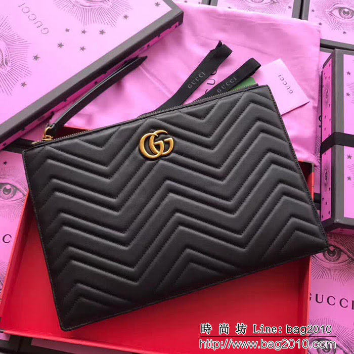 GUCCI古馳 歐洲正品原單 人形紋牛皮手拿包 476440 黑色全皮 WTG1526