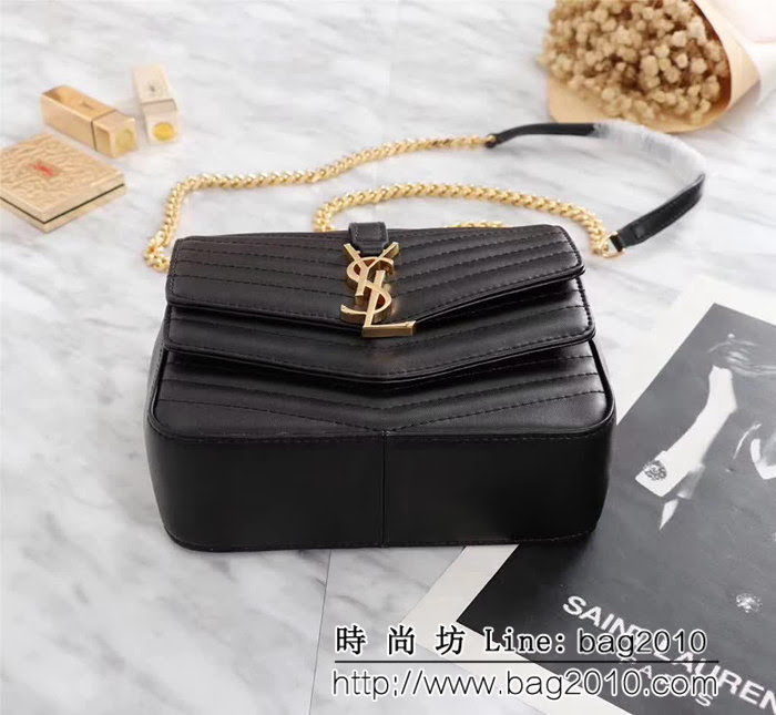 YSL聖羅蘭 雙蓋頭 最新原版羊紋皮鏈條單肩斜挎包 YAS1001