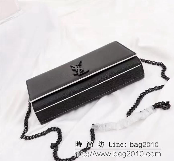YSL聖羅蘭 黑白配 魚子醬牛皮球紋 鏈條單肩斜挎包 26812 YAS1040