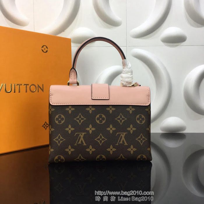 路易威登LV 新款 老花配皮 頂級原單 M44080粉色 Locky BB手袋 金色LV掛鎖鎖扣 Toron手柄 手提肩背斜挎包  YDH2539