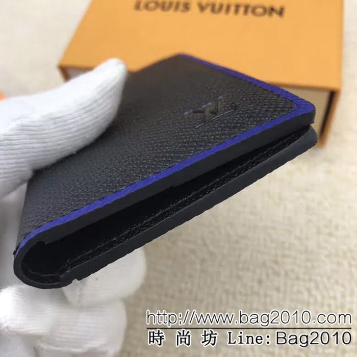 M30550頂級原單此款路易威登口袋錢夾身材小巧,功能強大,可存放信用卡紙幣與票據,標誌性Taiga皮革材質,醒目的對比色飾邊設計,優雅而摩登,尺寸:11x7.5cm