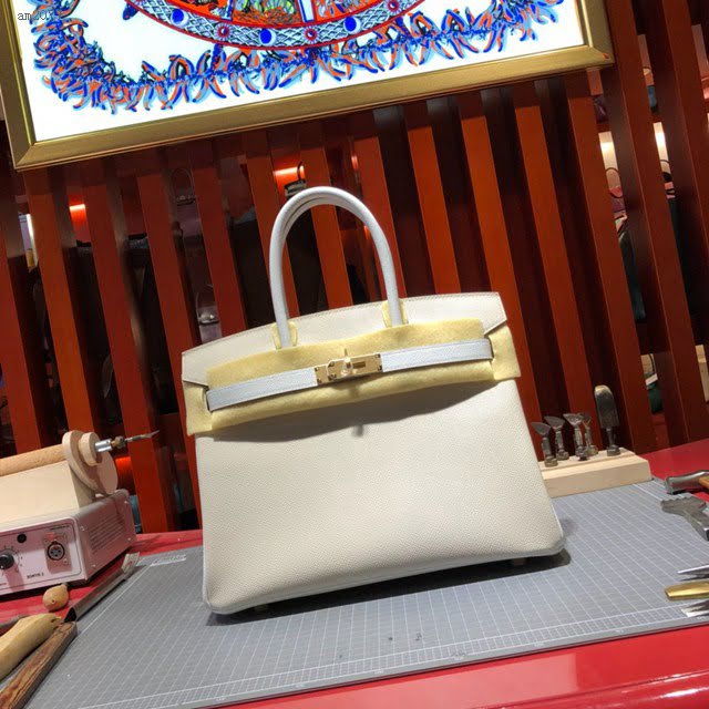 Hermes女包 愛馬仕經典款Birkin包 epsom皮手掌紋 Hermes鉑金拼色女士手提包 am2077