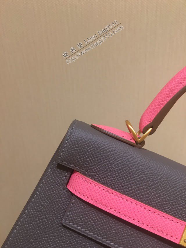 Hermes女包 愛馬仕經典款Kelly女包 金扣 錫器灰拼唇膏粉 頂級手工 Hermes拼色凱莉包  am2087