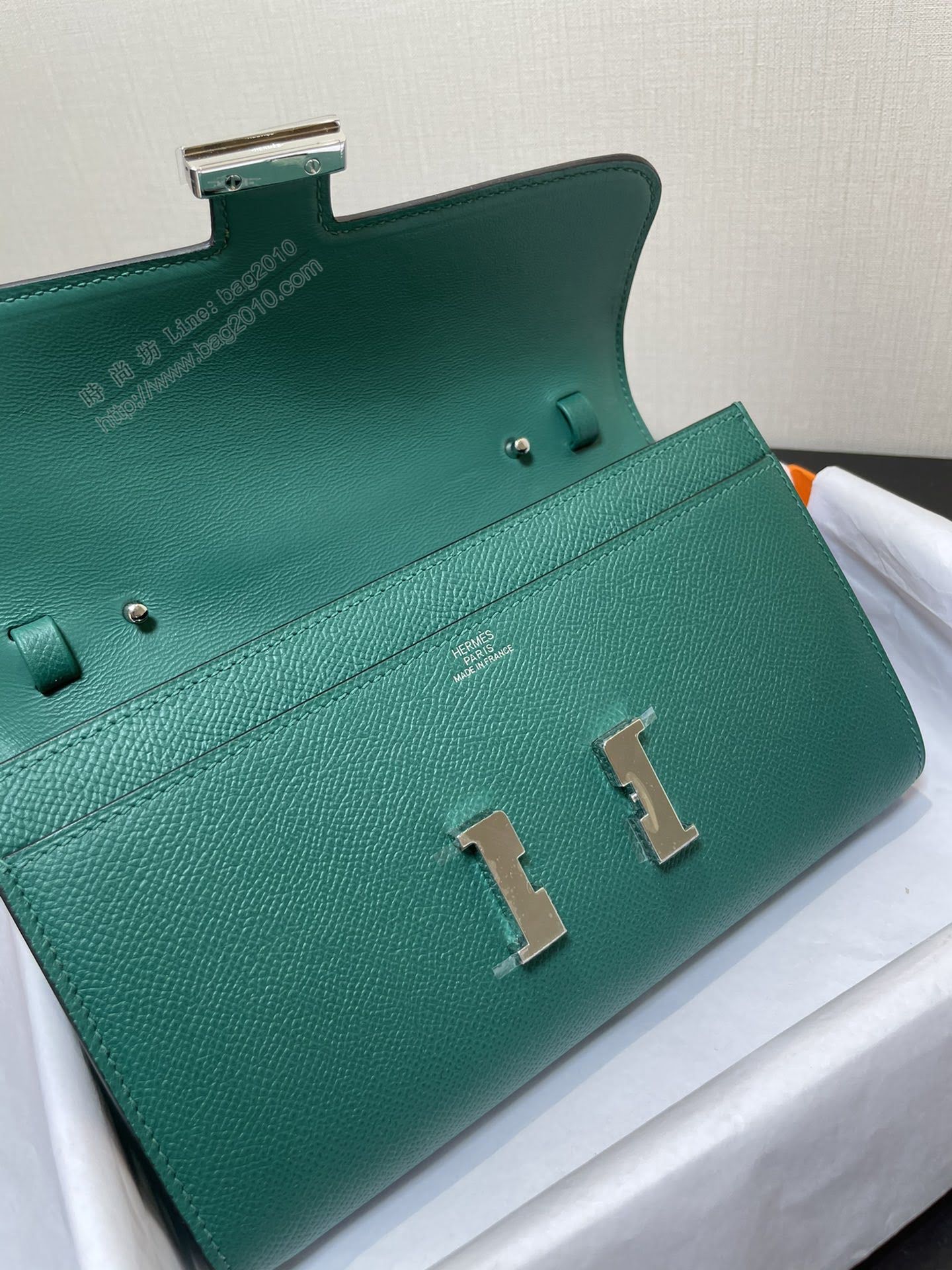 Constance to go斜挎包 細節圖 顏色絲絨綠銀扣,皮質 epsom 【現貨】(尺寸:長20.5 x 寬13 x 厚2釐米)大康斜挎包,有肩帶,“H”鎖扣,12個卡槽,2個鈔票口袋,1個中央拉鏈零錢包,1個前袋,1個後袋,