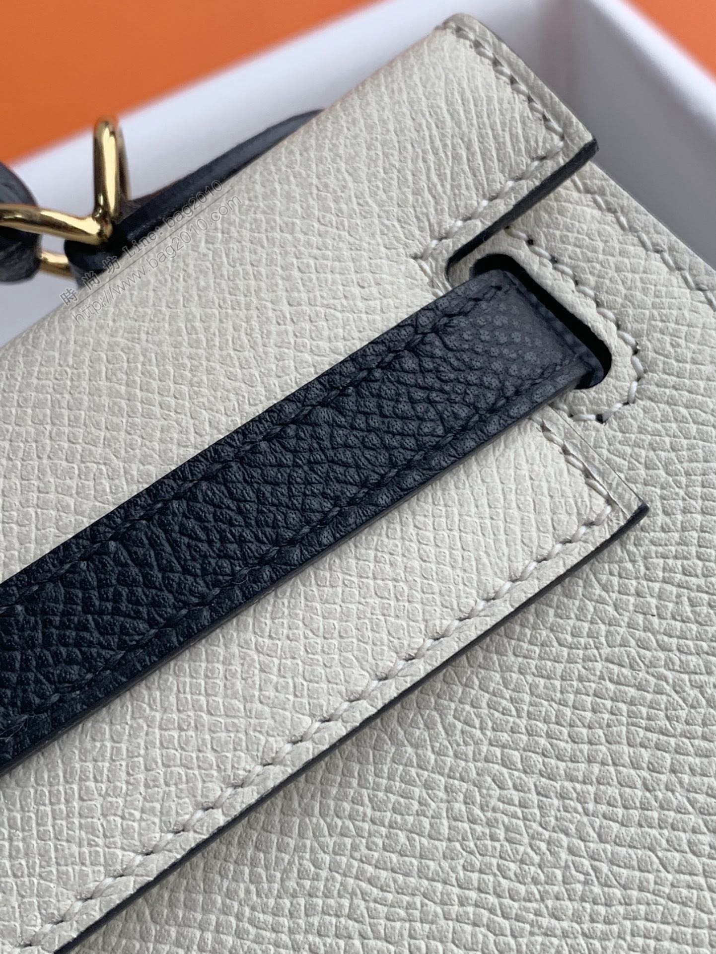 Hermesn凱莉包 愛馬仕Kelly手提女包 Kelly拼色女包 epsom皮 奶昔白拼黑色 am2292