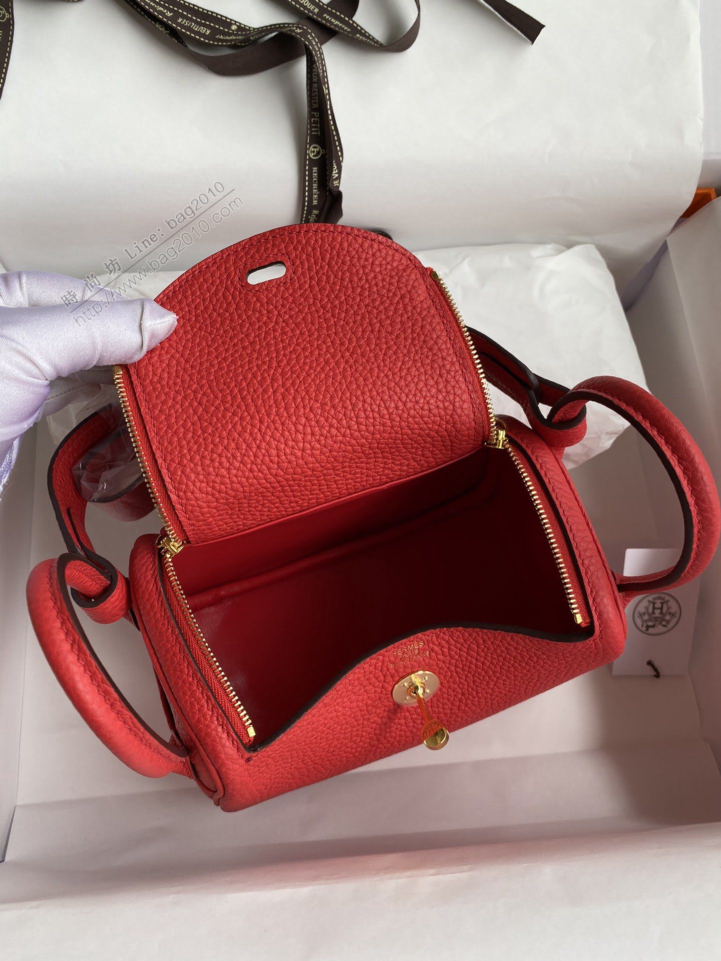 Hermesn琳迪包 愛馬仕miniLindy手提肩背包 進口TC皮 大紅 頂級純手工  am2318