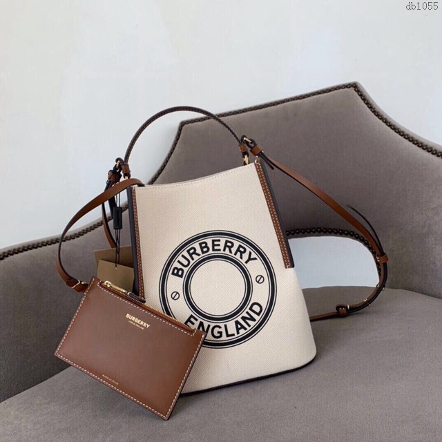 Burberry專櫃新款女包 巴寶莉白色帆布系列水桶包手提肩背女包  db1055