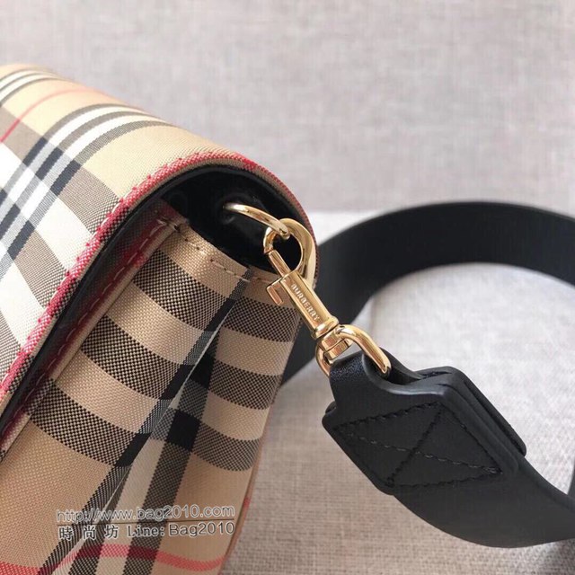Burberry專櫃新款女包 巴寶莉小號Vintage格紋拼皮革斜背包 db1063