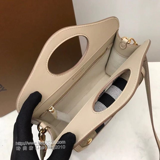 Burberry專櫃新款女包 巴寶莉格紋帆布拼皮托特包手提肩背包 db1135