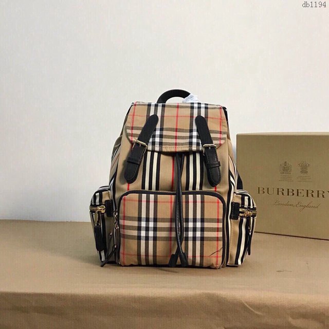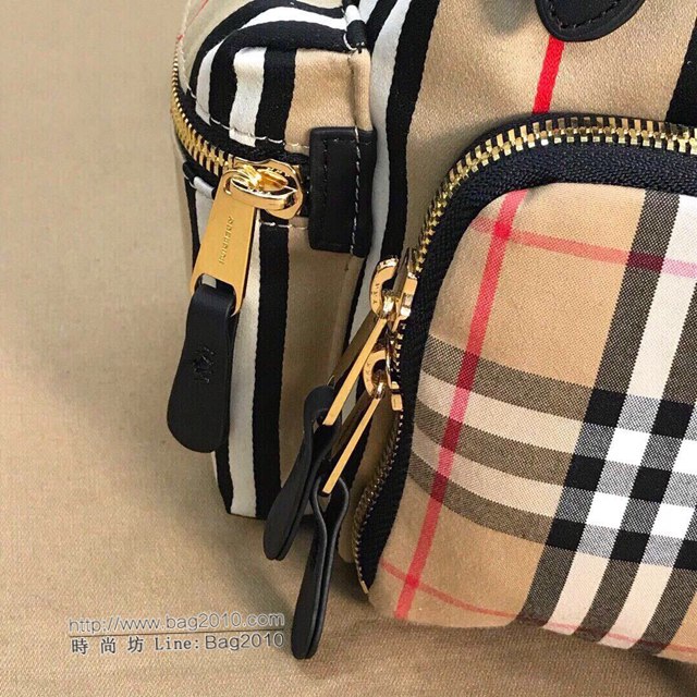 Burberry專櫃新款雙肩包 巴寶莉小號Vintage條紋拼牛皮軍旅背包 db1194