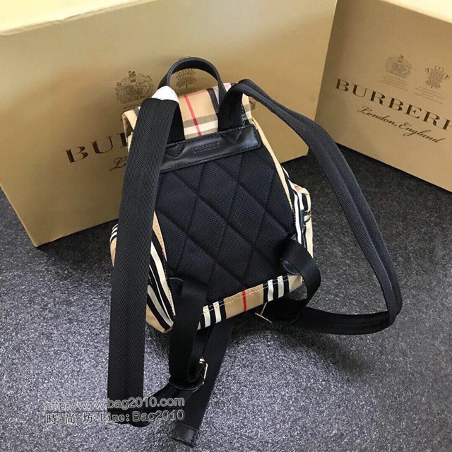 Burberry專櫃新款雙肩包 巴寶莉中號Vintage條紋拼牛皮軍旅背包 db1195