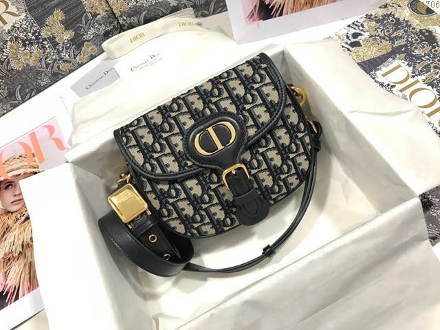Dior bobby 小號藍色 Oblique 印花帆布精心製作,彰顯高雅的輪廓與協調的比例。飾以復古金色五金配件提升格調。搭配可拆卸、可調節的肩帶,點綴有軍裝風格搭扣,可肩背、斜挎或手提。尺寸:18*14*5、獨家實物拍攝、型號:M9317、配送專櫃包裝禮盒