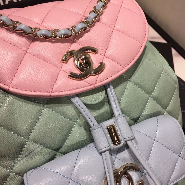 Chanel AS1371拼色 2020早春新款黑色山羊皮拼色 Duma雙肩背包 超級小可愛 強烈種草21.5x24x12cm