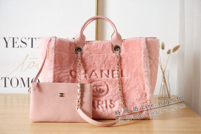 Chanel專櫃新款23k羊毛配皮粉色沙灘包 66941 香奈兒shoping bag購物袋 djc4627
