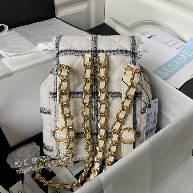 Chanel專櫃新款22K格子毛呢雙肩包 AS3615 香奈兒格子毛呢女士背包 djc4987