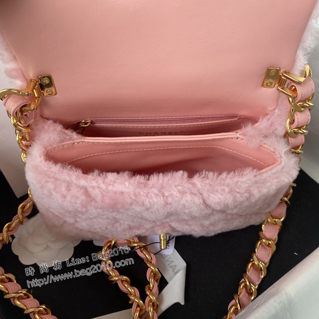 Chanel專櫃新款22B枕頭包小號AS3498 香奈兒羊毛手提肩背鏈條女包 djc5092